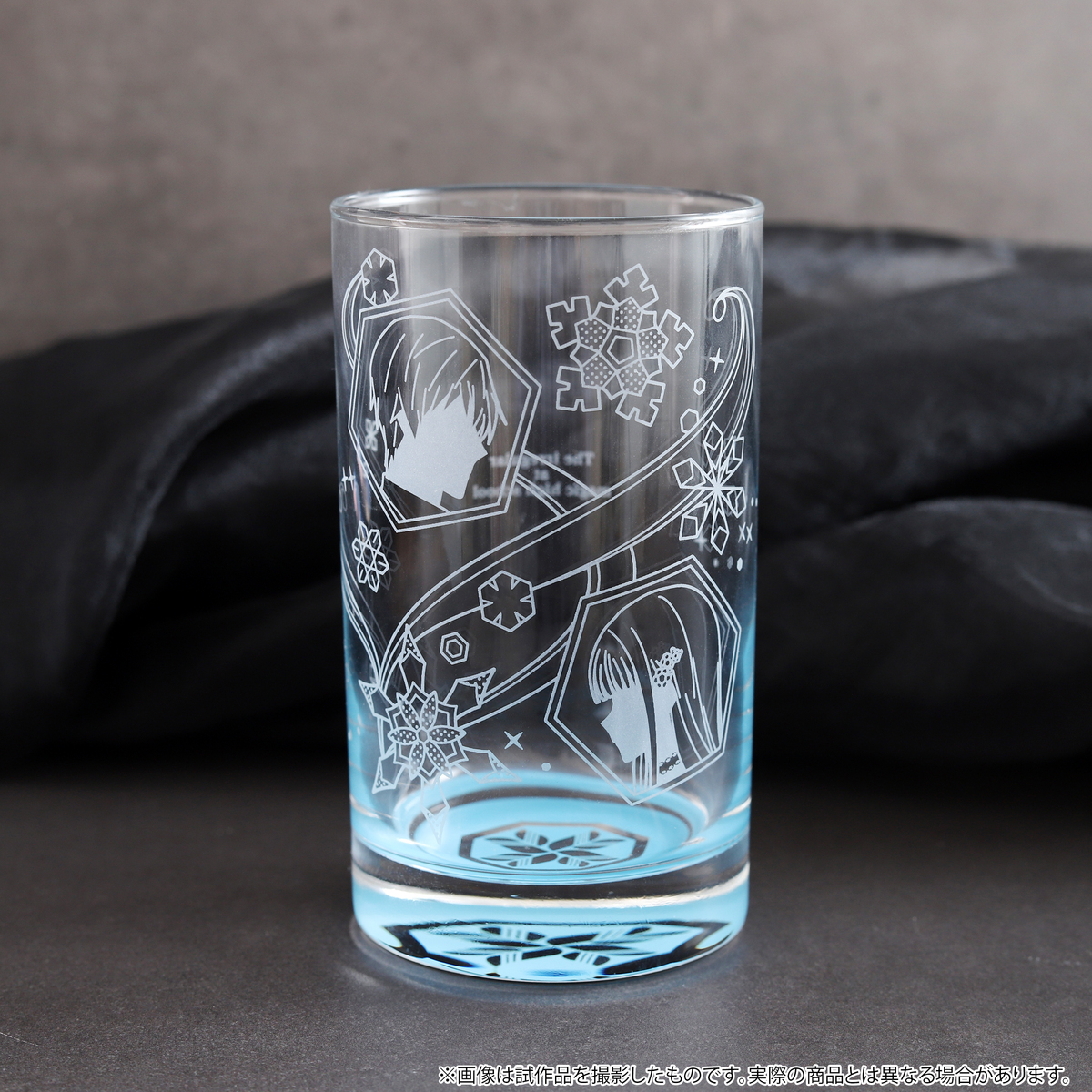 すりガラス風のデザインと底面の水色がポイントのグラスです。